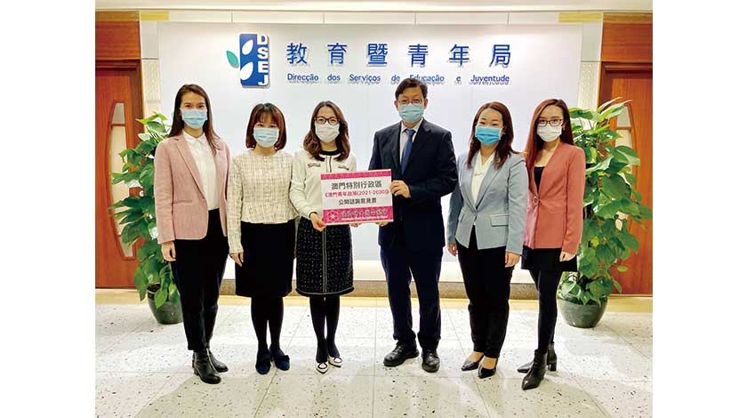 【特訊】婦聯副理事長黃潔貞、庄玲玲、呂綺穎和政策研究室主任黃梁君等一行,昨(10日),到教育暨青年局遞交有關《澳門青年政策(2021-2030)》意見書,並提出六點建議,由局長老柏生及副局長龔志明親自接收意見書。