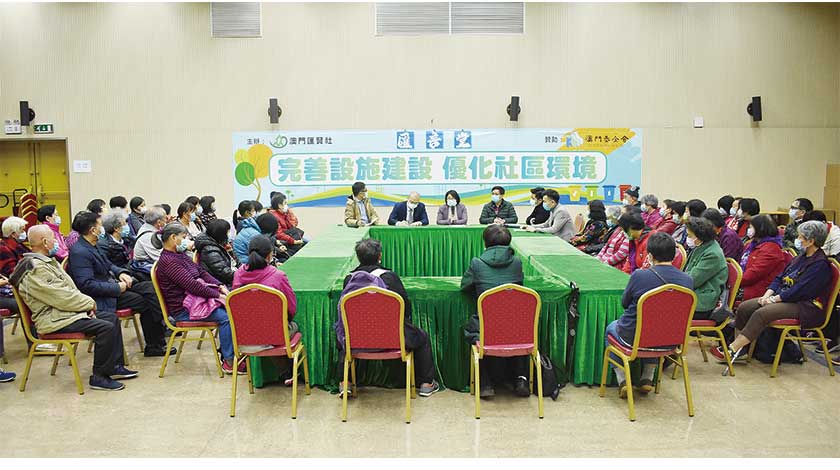 【特訊】澳門匯賢社日前舉辦“匯言堂”座談會,並以“完善社區建設,優化社區環境”為題邀請一眾嘉賓與社區居民一起座談,共同探討本澳的社區優化及交通、環境等問題。立法會議員施家倫、宋碧琪,北區社諮委蔡思偉、民众建澳聯盟大廈事務委員會主任袁漢均等嘉賓及60多社區居民出席。