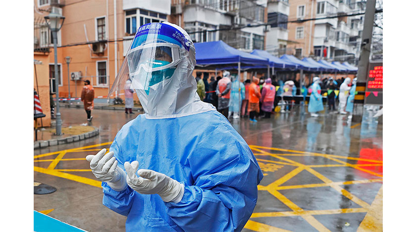 22日,上海市寶山區某小區,醫護人員正在等待相關人員信息表。當日,上海市衛生健康委主任鄔驚雷在上海防控工作第91場新聞發佈會上介紹,在對上海市確診病例密切接觸者主動排查過程中,發現寶山區相關人員檢測結果可疑,目前正在加快對其開展臨床檢查和實驗室複核,同時,正對相關區域和人員進行追蹤排查。(中新社記者 殷立勤 攝)