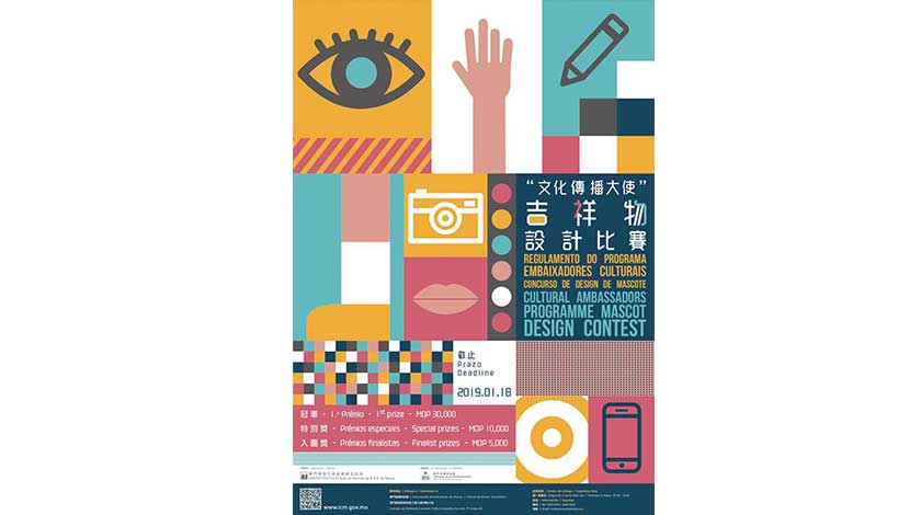 【特訊】由文化局主辦、澳門插畫師協會承辦的「文化傳播大使計劃」吉祥物設計比賽現正接受報名,得奬作品將成為計劃的吉祥物,與文化傳播大使一同傳播「文化澳門」的形象。遞交作品日期由今日至2019年1月18日,歡迎公眾踴躍參加。