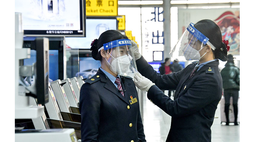 春運期間,北京南站採取即時旅客體溫監測、候車室通風、無死角不間斷消毒、保持距離候車和進出站、免費提供口罩、疫情防控巡查和宣傳等數十項措施,築牢春運期間的旅途防疫安全線。(新華社記者 李欣 攝)