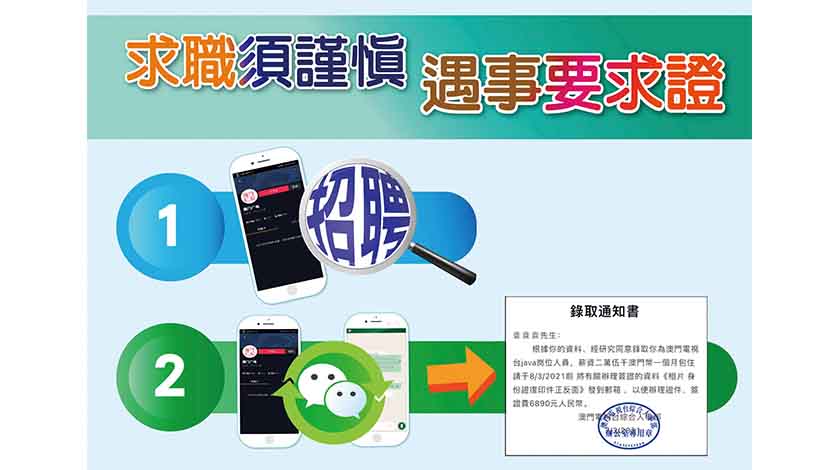 司警局至今並未接到任何損失舉報,但仍特此發出警情通告,呼籲市民須時刻保持警惕,切勿隨便輕信網絡上的招聘訊息,或者向陌生人透露個人資料及轉帳匯款,以免招致損失。