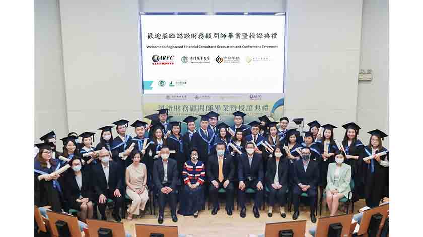 澳門金融學會管理委員會黃善文主席表示,未來金融業將會成為澳門適度多元發展的支柱和主打產業,前境一片光明,人材需求將持續提升,對從業人員的專業資格要求將不斷提高。有見及此,本會和國際認證財務顧問師協會港澳中心、澳門城市大學合作開辦此課程已長達七年,希冀能持續為業界培育和輸送人材,為提升澳門金融產業作出應有的貢獻。並祝賀28位畢業學員能學以致用,事業有成。