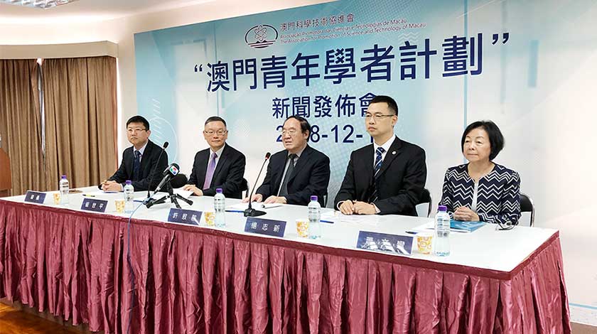 【特訊】12月1日,澳門科學技術協進會舉行「澳門青年學者計劃」(以下稱「計劃」)新聞發佈會,宣佈澳門科學技術協進會與國家人力資源和社會保障部全國博士後管委會辦公室,於11月16日簽署的「澳門青年學者計劃」已正式啟動。出席新聞發佈會的嘉賓為:澳門科學技術協進會會長許敖敖,理事長崔世平,澳門大學研究服務及知識轉移辦公室主任楊志新,澳門科技大學科研管理處處長梁勇,香港與內地合作的「香江學者計劃」前主席蕭文鸞教授等。