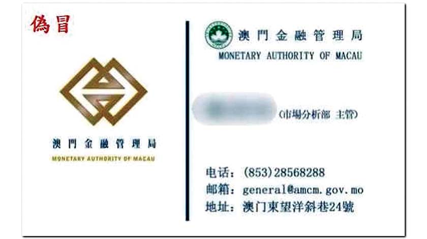【特訊】澳門金融管理局近日接獲舉報,懷疑有人製作假冒金管局職員的名片,在社交平台及通訊軟件遊說投資金融產品,金管局已向警方報案,並呼籲公眾提高警惕。