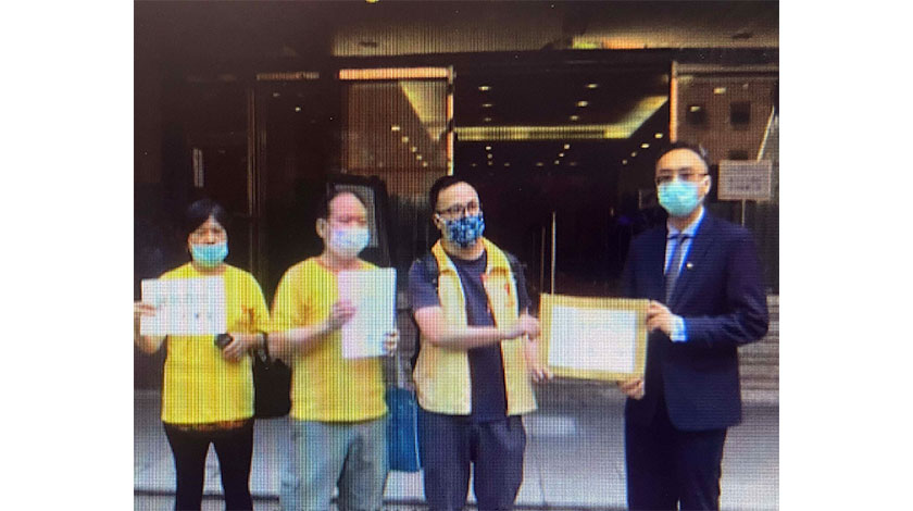 團體澳門人民力量一行數人,昨日上午11時前往澳門中國旅行社,向該機構人員遞信(附圖)。澳門人民力量負責人表示,收到有市民反映,現時的回鄉證辦證費用比澳門身份證為高,要求澳門中國旅行社向內地有關部門反映,調低辦理回鄉證費用,以配合將來港澳居民融入大灣區政策發展。