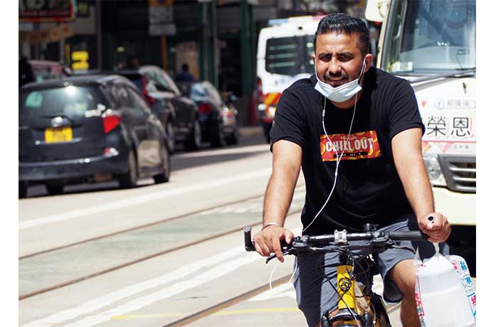 5月23日,香港天氣炎熱,外賣送餐的工人汗流浹背。當天,香港天文台發出酷熱天氣警告。在下午2時半錄得36.1度,是有紀錄以來的5月最高氣溫,亦是今年的最高氣溫。(香港中通社圖片)