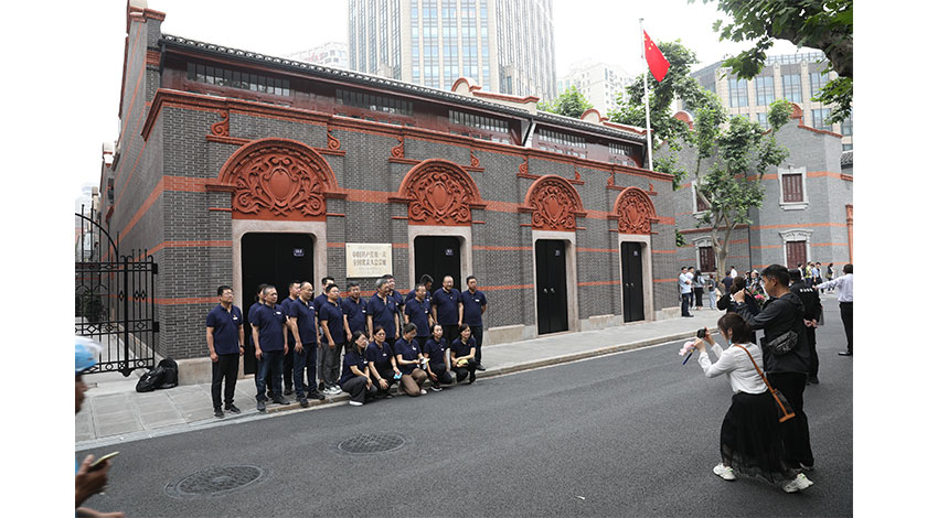 作為中國共產黨人的精神家園和黨夢想啟航的地方,中共一大紀念館6月3日在上海開館,『偉大的開端——中國共產黨創建歷史陳列』主題展覽同日揭幕,聚焦建黨初期中國共產黨在上海的革命實踐,生動體現中國共產黨的誕生歷程。圖為民眾在中共一大會址前留影。(中新社記者張亨偉攝)