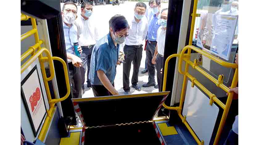 林衍新局長、吳小麗會長親身體驗新車配置的德國氣墊司機座椅,對該坐椅能自動調節、保護脊椎並有按摩功能極為滿意,嘉許新福利能照顧到車長長期開車的辛勞。街總領導對新增電子後視鏡能不受雨霧天氣、夜間光線不足的影響,亦能降低視野盲區,加強駕駛安全也表示滿意。整車一級踏步低地台通道極大改善了乘客乘車環境;吳小麗會長更親自測試鋁制輪椅渡板操作的輕巧方便;新配置的電動趟門帶防夾功能靈敏,可更大程度保護乘客的安全。