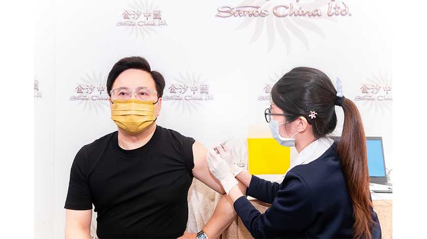 金沙中國有限公司總裁王英偉博士於7月5日身體力行與團隊成員共同接種疫苗,他表示:「為社區合力構建免疫屏障是每位成員的責任,樂見公司上下一心,踴躍登記接種疫苗,為維護澳門這座安全城市克盡己任。再次感謝澳門特區政府的領導,帶領社區共渡460多天無本地感染個案的卓越成果;同時就澳門衛生局協助團隊成員認識疫苗講解及外展接種專場致以衷心謝意。」