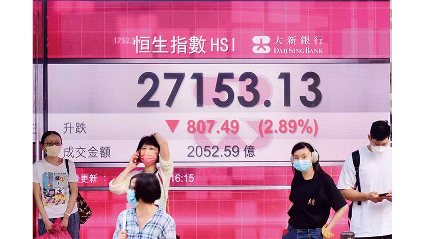 港股當日低開79點,在零碎沽壓主導下,大市反覆,上午最多跌588點。午後跌幅持續擴大,曾稍穿250天線即27113點。全日收盤跌807.49點,收報27153.13點。