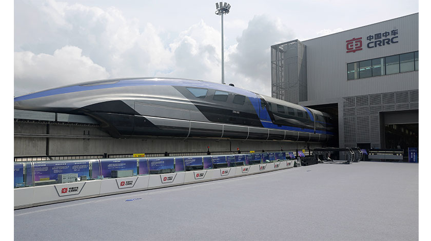 7月20日,由中國中車承擔研製、具有完全自主知識產權的時速600公里高速磁浮交通系統在青島下線。(中新社記者胡耀傑攝)