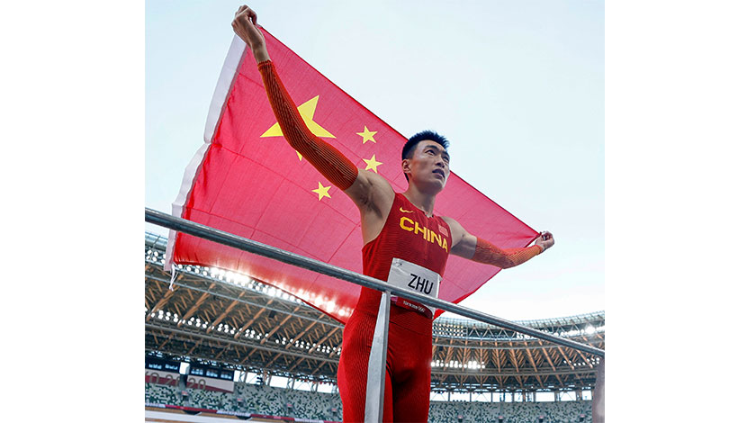 8月5日,中國選手朱亞明在東京奧運會田徑男子三級跳遠決賽以17.57米的成績摘得銀牌(中通社)
