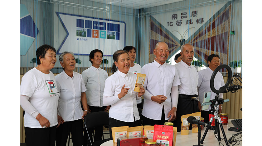12日,在寧夏吳忠市紅寺堡區弘德村一電商中心,一群平均年齡達64歲的『銀髮老年團』正在直播間向網友推介農產品。據瞭解,他們是2012年從寧夏南部山區搬遷而來的生態移民。如今,他們搖身一變,『玩』起了新時尚,不僅唱歌、跳舞、拍短視頻,還當起了網絡主播。(中新社)