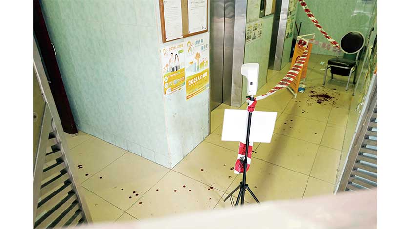 昨日上午九時許,消防接報台山新城市第一街新城市花園第一座鴻圖閣有人被斬傷,救護員到場於大廈門外發現一名六十三歲男傷者,他左邊頸部受傷流血,另於大堂走廊發現一名五十四歲女傷者,她左頸、左肩、右上臂、前臂和手掌,左前臂均有刀傷,傷勢較重。兩名傷者仍然清醒。救護員立即將兩名傷者送往山頂醫院急救,當中男傷者經治療後出院。
