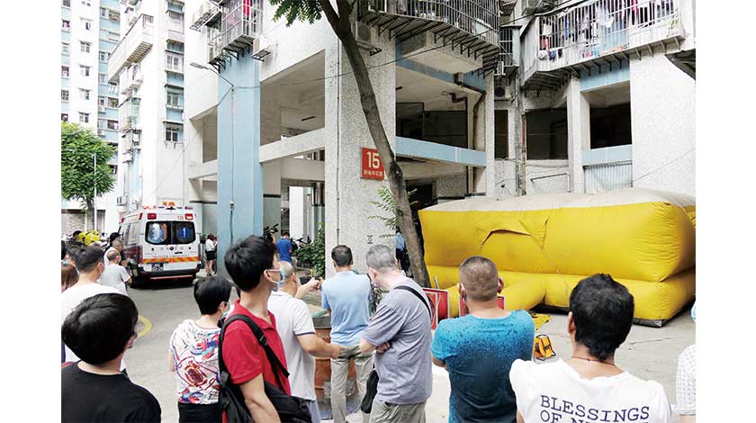 期間,有傷者報稱於大廈內被一名青年住客斬傷,大批警員和消防員配備盾牌和防暴叉到大廈搜捕,及後,警員從住戶知悉該青年居於高層某單位,但青年於單位內拒絕開門並與警員對峙,由於恐該名青年做出爬窗等危險動作,遂於大廈地面張開安全氣墊戒備。