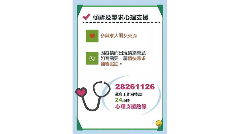有社會服務團體反映,市民出現抗疫疲勞;超過500日的抗疫日子,有不同的社區/社會服務團體反映,在疫情影響整體經濟、社會環境,或市民的工作/收入,以及長期高度精神崩緊的狀態下,部份市民會出現情緒問題、焦慮等情況,有些個案需要接受情緒支援或輔導;有市民出現抗疫疲勞和情緒問題。