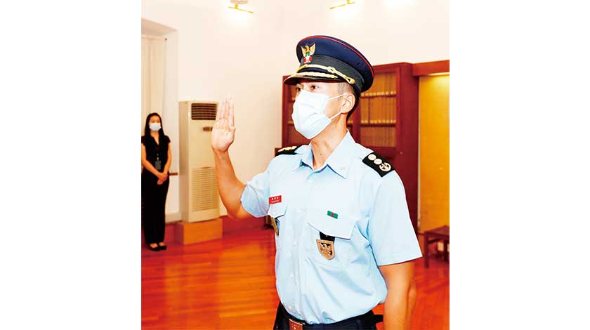 【特訊】澳門保安部隊事務局於9月23日舉行新任處長就職儀式。儀式由局長郭鳳美主禮及監誓,並在副局長關啓榮、蔡惠濠及各部門主管的見證下,曾偉邦就任技術支援廳輔助服務處處長。