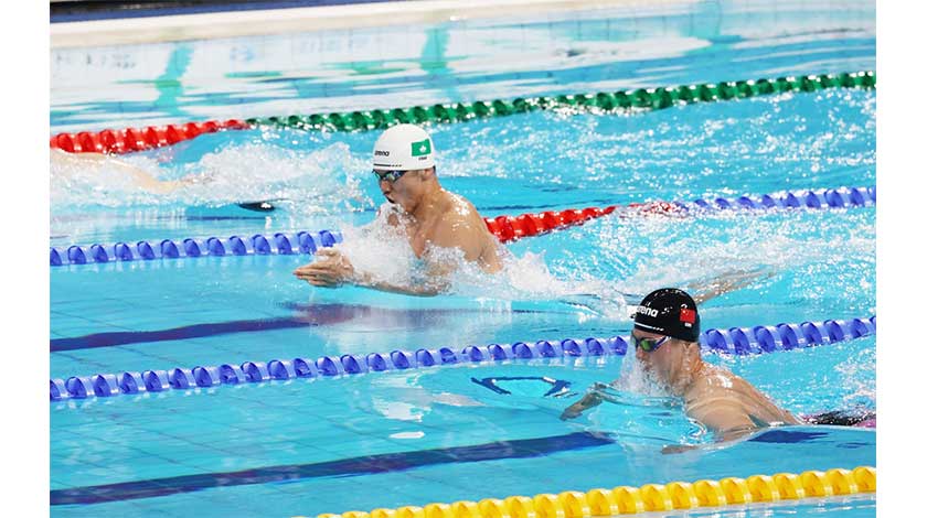 游泳初賽,陳珮琳在女子二百米蛙泳表現不俗,以2分40秒61的成績刷新澳門紀錄,其隊友鄭詠琳則以2分48秒11完成;女子一百米自由泳,郭熙晴以1分0秒61完成;男子二百米仰泳,李殷齊的時間為2分19秒75。昨日進行的男子二百米蛙泳,周文顥和賽翺徽分別游出了2分17秒74和2分25秒19的時間,其中周文顥晉級半決賽,造出2分17秒81的時間,惜未能擠身決賽;而林思庄和關綺晴分別在男子一百米自由泳及女子二百米蝶泳,各以53秒 57及2分37秒29完成。上述項目均未能晉級。