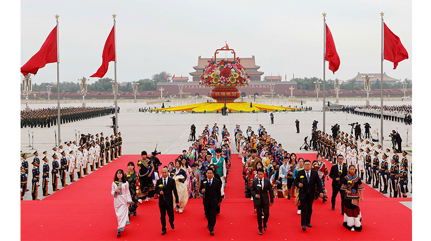 9月30日,烈士紀念日向人民英雄敬獻花籃儀式在北京天安門廣場隆重舉行。中新社