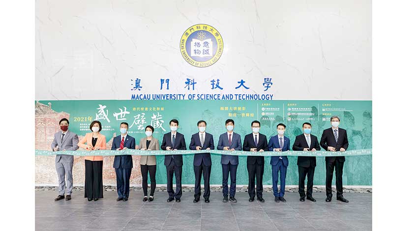 【特訊】由中國宋慶齡基金會、國家文物局、陝西省文物局共同主辦,陝西省文物交流協會、陝西歷史博物館(陝西省文物交流中心)、澳門科技大學人文藝術學院承辦的「盛世壁藏——唐代壁畫文化特展走進澳科大」開幕式於10月29日上午在澳門科技大學R座綜合教學大樓大堂隆重舉行,開幕式活動採用線上線下相結合模式同步進行。
