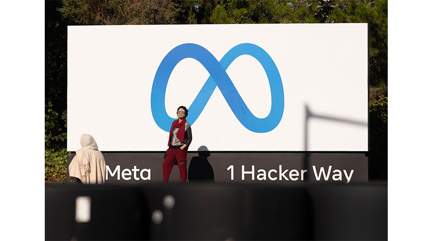 當地時間10月28日,位於美國加利福尼亞州門洛帕克的元宇宙公司總部的新標識吸引市民拍照留念。當日,美國社交網絡巨頭Facebook公司(臉書)宣佈,公司更名為meta(元宇宙),其總部的標誌性『大拇指』標識也被換成類似于『無限符號』(∞)的新標識。中新社