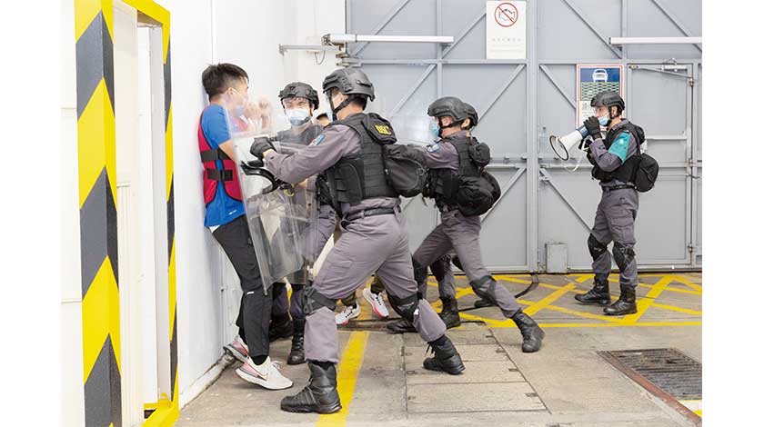 【特訊】懲教管理局為進一步提高人員的危機意識及應對突發事件的能力,於昨日在路環監獄進行“應對外來衝擊保安事件演練”,模擬有3名探監人士在辦理進入監獄手續時違規拍攝且不服警令,更破壞設施及企圖闖入監獄,獄警人員及時採取應變措施,有效地處置突發事件。