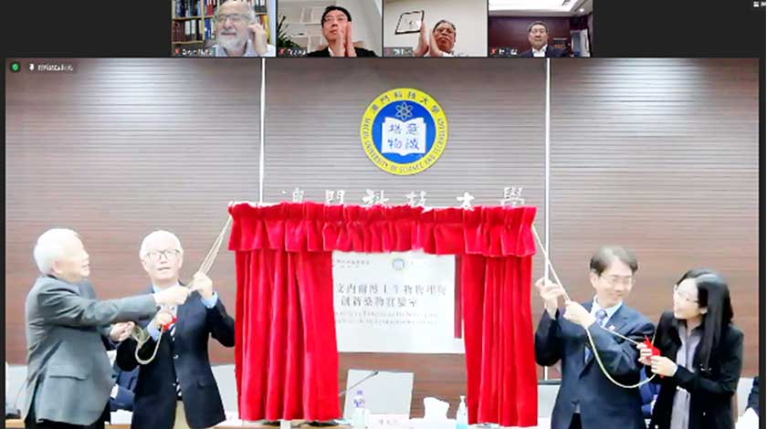 【特訊】2021年12月7日下午,澳門科技大學埃爾文內爾博士生物物理與創新藥物實驗室召開了第一次學術委員會第一次會議。澳門科學技術發展基金陳允熙主席、葉桂林委員、科技發展及合作部高級經理陳躬安、澳門科技大學李行偉校長、學術委員會主任丁健院士等於澳門會場出席了此次會議。諾貝爾獎獲得者實驗室主任Erwin Neher教授等多位院士及教授線上出席了此次會議。