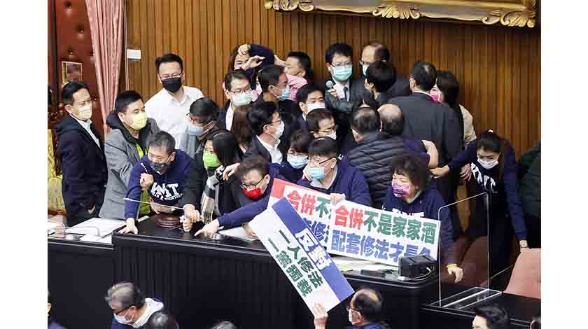 發現民進黨提案後,國民黨立委當即表示強烈反對,見提案表決無法勝過民進黨,多位國民黨立委遂衝上議場主席台與發言台,民進黨立委則進行阻攔,最終藍綠立委擠作一團,發生肢體衝突,議事也隨之癱瘓。