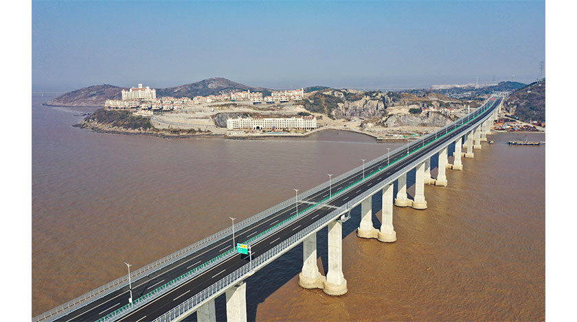 29日浙江舟山,新開通的舟岱大橋連接起舟山本島和岱山島。寧波舟山港主通道項目當日全線通車。舟岱大橋和魚山大橋、富翅門大橋及原有的舟山跨海大橋連成一體,總建設里程達83公里,跨越8個島嶼,擁有8座大橋,成為中國最長的連島高速公路和規模最大的跨海橋樑群。中新社