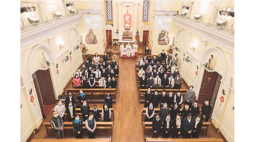 【特訊】聖善學校為慶祝110週年華誕,日前(2022年1月25日)提早在氹仔嘉模聖母堂舉行校慶感恩聖祭,敦請天主教澳門教區首牧李斌生主教主禮,校牧袁偉明神父共祭。由於疫情關係,感恩祭僅邀請友校代表嘉賓、聖善學校校董、教職員、小五及小六學生參與。