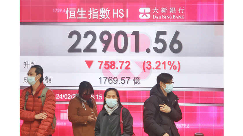 第一上海首席策略分析師葉尚志向香港中通社記者分析,港股跌勢延伸,恆指挫逾750點,失守了23000點。俄烏局勢升級並且有軍事行動,消息對全球市場都構成了震盪加劇,俄羅斯股市指數更是崩跌了有逾20%;港股也不能獨善其身,加上香港疫情依然嚴重有待受控,港匯創出了近期新低顯示資金有外流壓力,都是打擊市場氣氛的消息因素。