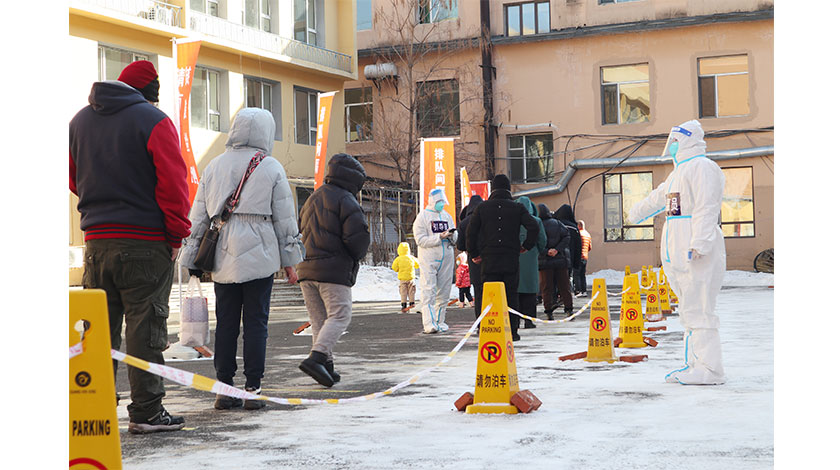 3月6日,吉林省吉林市,市民排隊等待做核酸檢測。吉林省衛生健康委6日通報,3月5日0時至24時,全省新增本土確診病例25例(均為輕型),新增本土無症狀感染者36例。面對防控壓力,吉林省多地繼續昇級管控措施,嚴防疫情擴散。 中新社