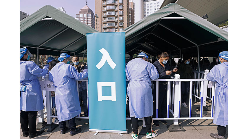 3月14日,居民在核酸檢測採樣前進行個人信息填寫。為了滿足居民的核酸檢測需求,當日,上海市黃浦區盧灣體育場臨時核酸檢測點正式啟用。中新社