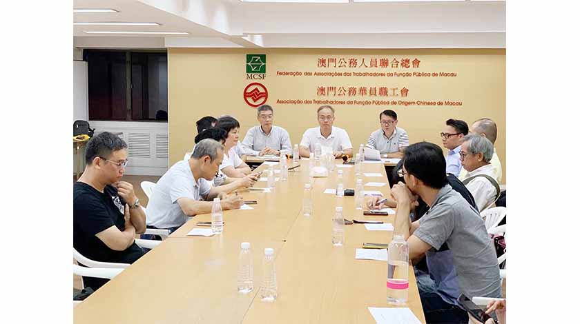 【特訊】日前,行政公職局與各公務員團體探討有關《澳門公共行政工作人員通則》的修改及方向。綜觀政府於二○二一年財政年度施政方針執行情況,在公共行政領域中,政府對於公務員管理、培養、完善授權制度中喜見成效,而於是次分享中共同探討三大方向:有效運用人力資源、配合橫琴深合需要及應對危機遠程辦公等等,上述內容都離不開本屆政府施政方針中的優化調動、招聘、職程管理制度,促進內部流動,加強人員能力及梯隊培養,深化公務人員的國家認同感,積極建設橫琴深度合作區,公務人員總會提出四建議: