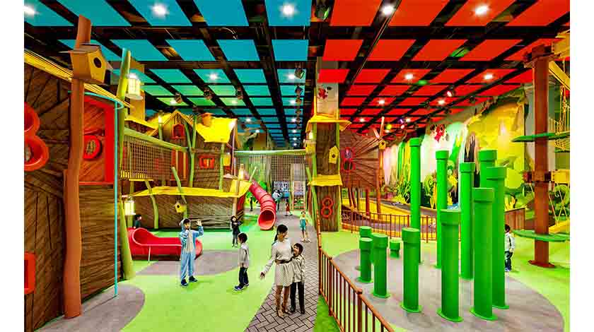 「滿紛樂園」佔地四層共29600平方呎,設有五大主題遊樂區,包括山岩、叢林、海底、外太空和太空站五區。不同年齡層的旅客都可以在此盡情探索多元玩樂體驗,是家庭享樂的最佳遊玩勝地。