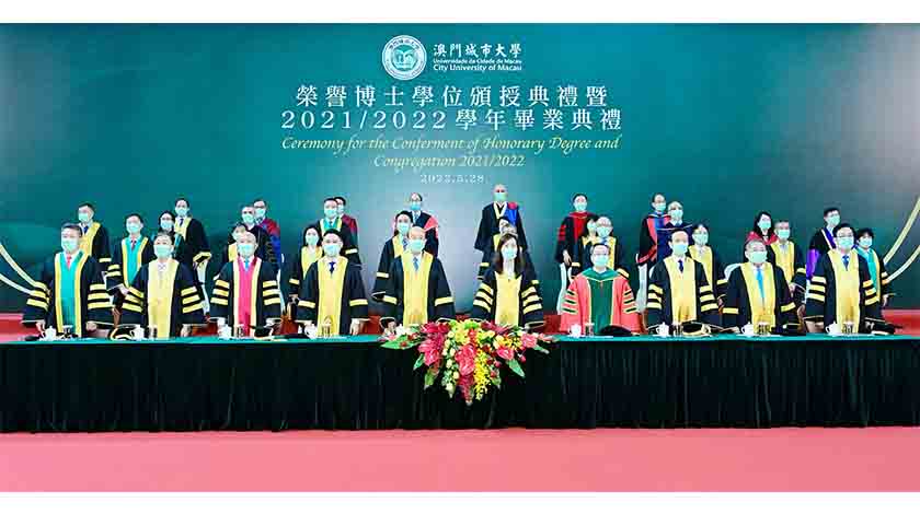 【特訊】澳門城市大學“榮譽博士學位頒授典禮暨2021/2022學年畢業典禮”以“現場觀禮”、“線上直播”結合的方式昨日(28)於澳門塔石體育館舉行,向高福、余華、韓方明和高開賢四位傑出人士頒授榮譽博士學位,表彰他們在各自領域的卓越成就,及為社會和高等教育發展作出的重大貢獻。城大今屆畢業生共逾2000名,包括博士生逾300名、碩士生逾900名、本科生逾800名,其中1500名畢業生出席典禮,另有四萬多人次線上觀禮。