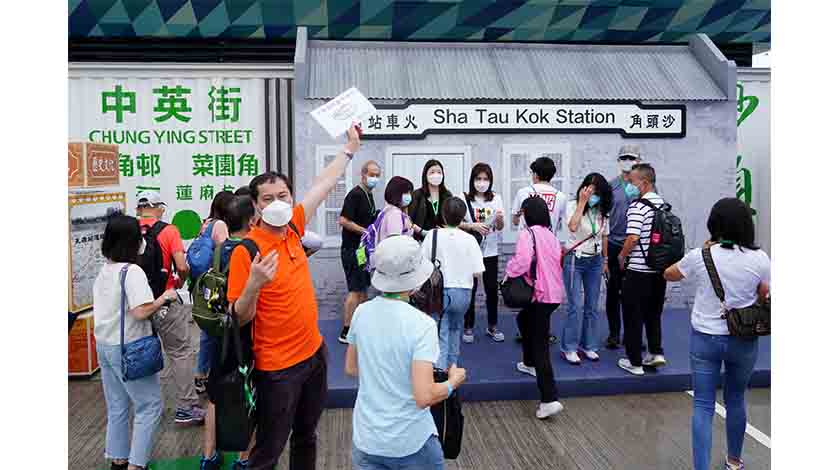 6月3日,位於香港邊境禁區的沙頭角碼頭正式向香港本地旅行團開放,推動沙頭角及新界東北旅遊發展。沙頭角自上世紀60年代以來實施邊境禁區管制,因此大部分香港市民一直沒有機會踏足沙頭角,令這個地方充滿神秘感。圖為開放首日有旅行團抵達沙頭角碼頭觀光打卡。 中新社記者 張煒 攝