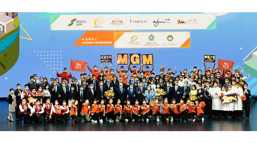 澳門綜合旅遊休閒企業職業技能競賽」由澳門勞工事務局及澳門工會聯合總會合辦,圍繞博彩娛樂、酒店綜合服務以及美食餐飲三個類別,結合職業技能、職業安全及專業服務三大元素。金獅團隊全力備戰,派出23名精英成員參賽,他們憑著精益求精的金獅工匠精神,及卓越技能脫穎而出,共奪得「博彩娛樂職業技能大賽」中「執碼」冠軍及「牌例結合服務」特金奬;「酒店綜合服務職業技能大賽」中「房間整理和主題設計」特金奬及最貼心服務奬,而「房間設施維護」更橫掃特金奬、最具職安健意識奬及最合拍團隊奬;「世界美食之都職業技能大賽」則奪得「餐飲服務」特金奬及「西餐廚藝」金奬。比賽當日,美高梅總裁及首席營運官王志琪、人力資源執行副總裁余婉瑩,以及一眾管理層成員親身到場,為參賽成員打氣,盡展金獅團隊精神。