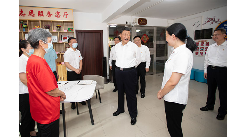 6月28日,中共中央總書記、國家主席、中央軍委主席習近平在湖北省武漢市考察。這是28日下午,習近平在東湖高新區左嶺街道智苑社區志願服務客廳,向社區工作者、下沉黨員幹部、志願者瞭解基層疫情聯防聯控機制運行情況。新華社