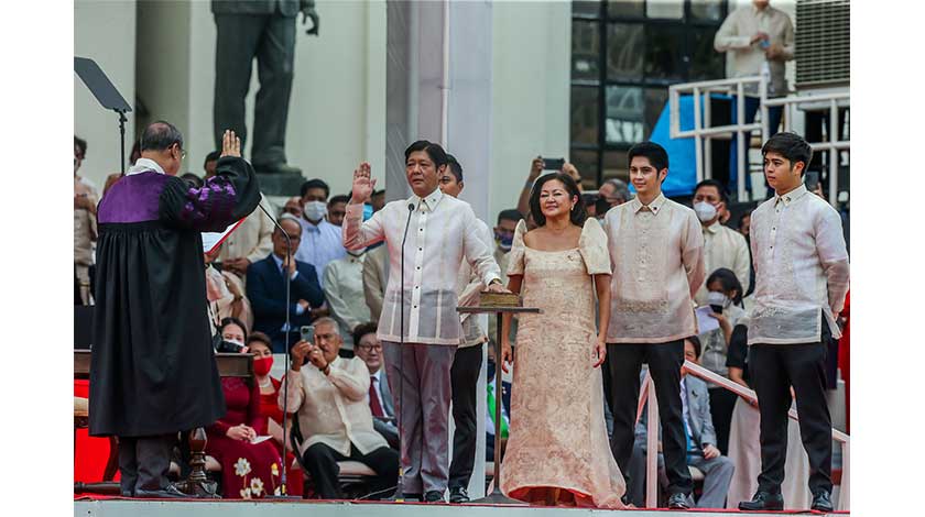 菲律賓新總統馬科斯宣誓就職 菲律賓新總統費迪南德•羅慕爾德茲•馬科斯6月30日在首都馬尼拉正式宣誓就任菲律賓第17任總統,他在就職講話中承諾將推動變革、改善民生。(新華社)