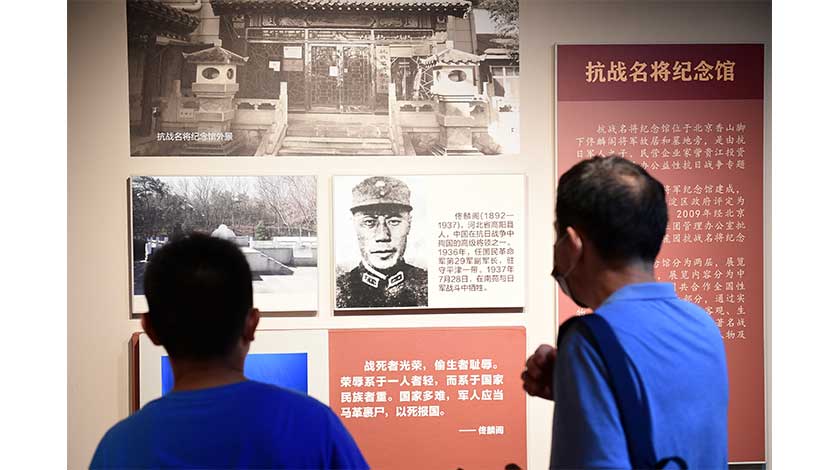 7日市民在位於北京的中國人民抗日戰爭紀念館參觀。當日,為紀念全民族抗戰爆發85周年,中國人民抗日戰爭紀念館聯合北京15家抗戰類紀念館推出《烽火印記——北京抗日戰爭主題片區特展》中新社