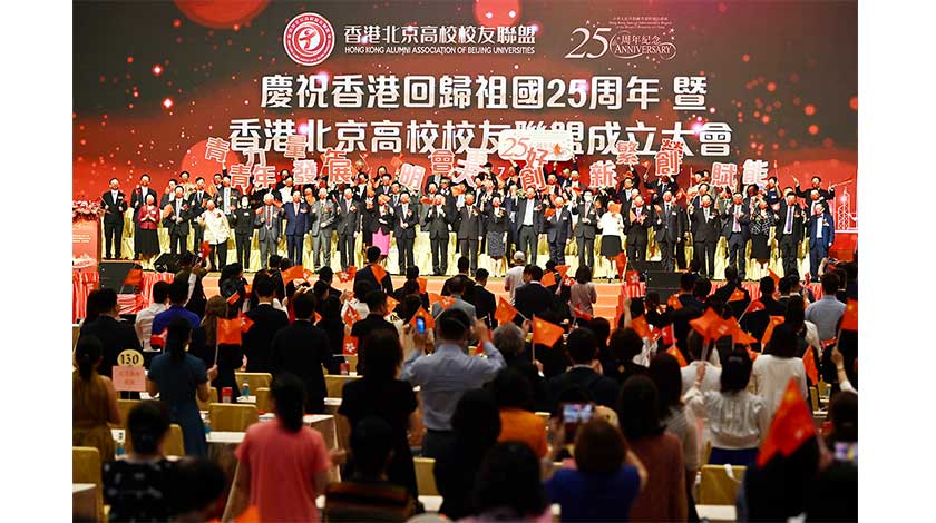 【香港中通社7月7日電】(記者李明珠)慶祝香港回歸祖國25周年暨香港北京高校校友聯盟成立大會,7日在香港會議展覽中心和北京會場同步舉行,兩地嘉賓共同見證。
