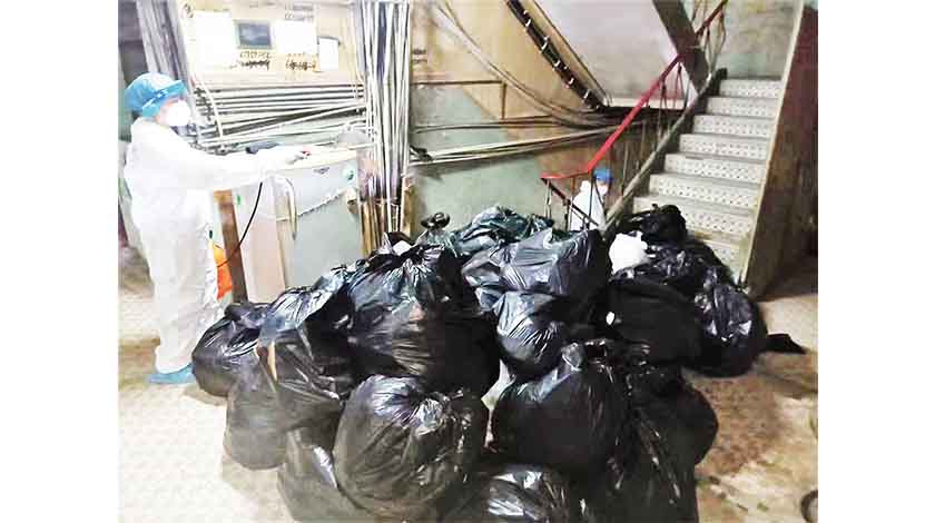 【特訊】自本波疫情爆發後,市政署每晚均派員到紅碼大廈為住戶清理垃圾,其中新美安大廈更是每兩天做一次全面深層消毒,由圍封至昨日,新美安大廈所收集的生活垃圾總量逾九噸,吉祥樓圍封三天已清理垃圾約一噸。