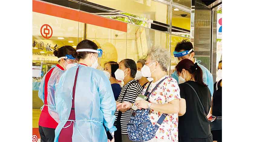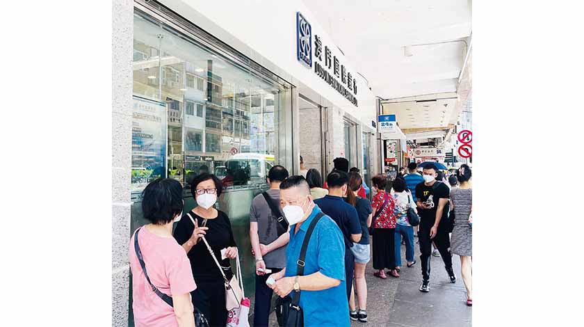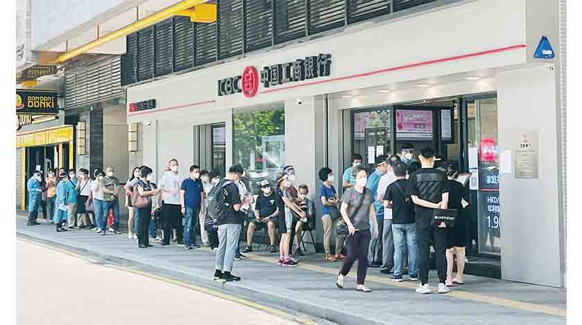 銀行為控制人流,由身穿防護衣的職員向等候的市民派籌,派籌完畢後即截龍。有排隊市民未能取籌,一度鼓譟,亦有市民因未有做快測而被拒進入銀行。
