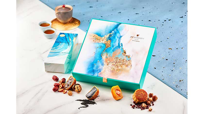 澳門JW萬豪酒店呈獻「山水有緣」月餅禮盒,典雅瑰麗的禮盒內盛載著8件精緻月餅,包括流心奶黃、黑芝麻、棗泥核桃及榛仁紅豆沙4款口味,傳統和創新相互輝映,是饋贈親朋好友的至上之選。