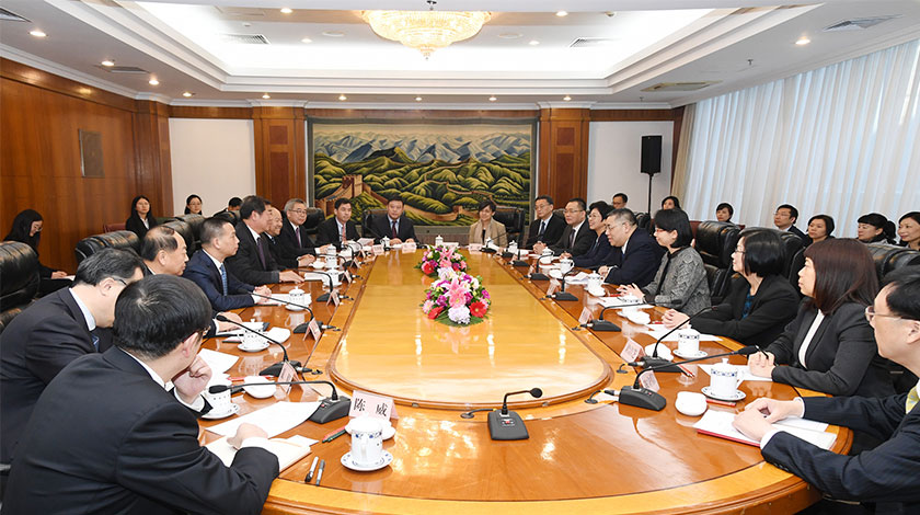 何立峰歡迎行政長官帶同代表團一行來北京,並簽署《國家發展和改革委員會與澳門特別行政區政府關於支持澳門全面參與和助力「一帶一路」建設的安排》,通過簽署《安排》將進一步明確澳門在推動「一帶一路」的地位和作用。他又指出,葡語系國家人口多,而澳門與葡語系國家有着特殊的關係和優勢,對推進「一帶一路」事業有積極促進的作用。