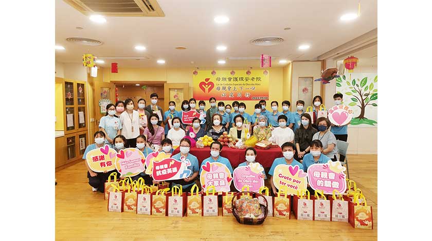 【特訊】藉著中秋佳節前夕,母親會領導層為感謝屬下安老院、護理安老院及下環長者綜合服務中心的員工,在早前新冠疫情嚴峻時,循社會工作局要求,院舍全面進入「防範式閉環管理措施」,期間同事刻苦抗疫,為院友的健康付出了巨大努力和貢獻,其精神可嘉,因此日前領導層一行往上述長者機構慰勞各員工,派送應節月餅及時令水果,感謝他們的辛勞付出,並致以親切、溫暖的問候,得到各機構員工們的熱烈歡迎。