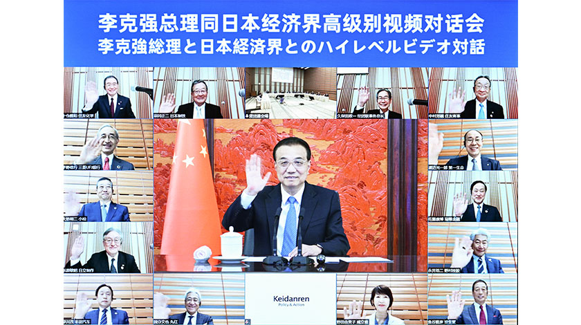 李克強同日本經濟界代表舉行高級別視頻對話會9月22日下午,國務院總理李克強在北京中南海紫光閣同日本經濟界代表舉行高級別視頻對話會。新華社