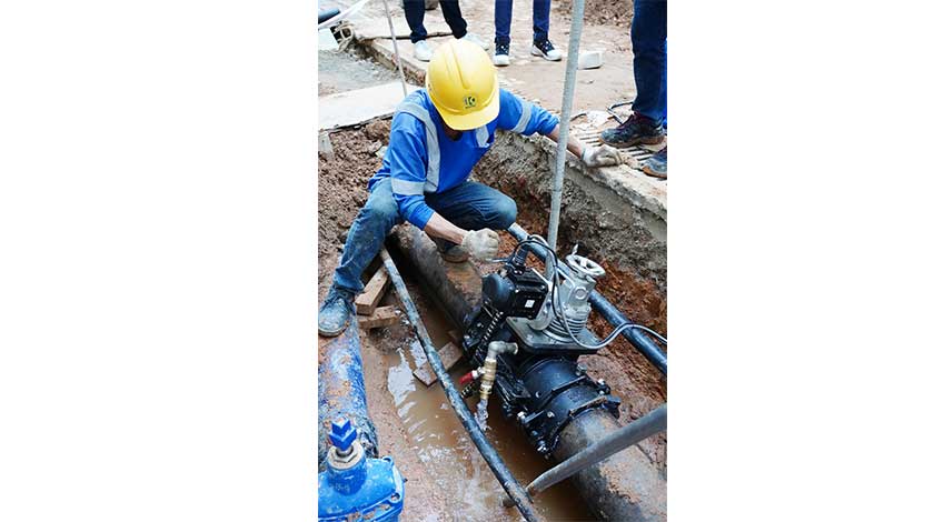 隨著本澳社會及經濟發展對用水需求不斷增加,為降低因管道工程需要暫停供水對周邊居民及工商業用戶帶來的不便,澳門自來水不斷尋找更適合本澳繁忙道路的施工方案。2019年首次引入內套管技術,成功於繁忙要道下對老舊管道進行修復。今年,公司先後在大三巴街、大炮台斜巷、馬六甲街等地區,經評估不具長時間停水條件的供水管道,採用帶水施工技術增加管道閥門。